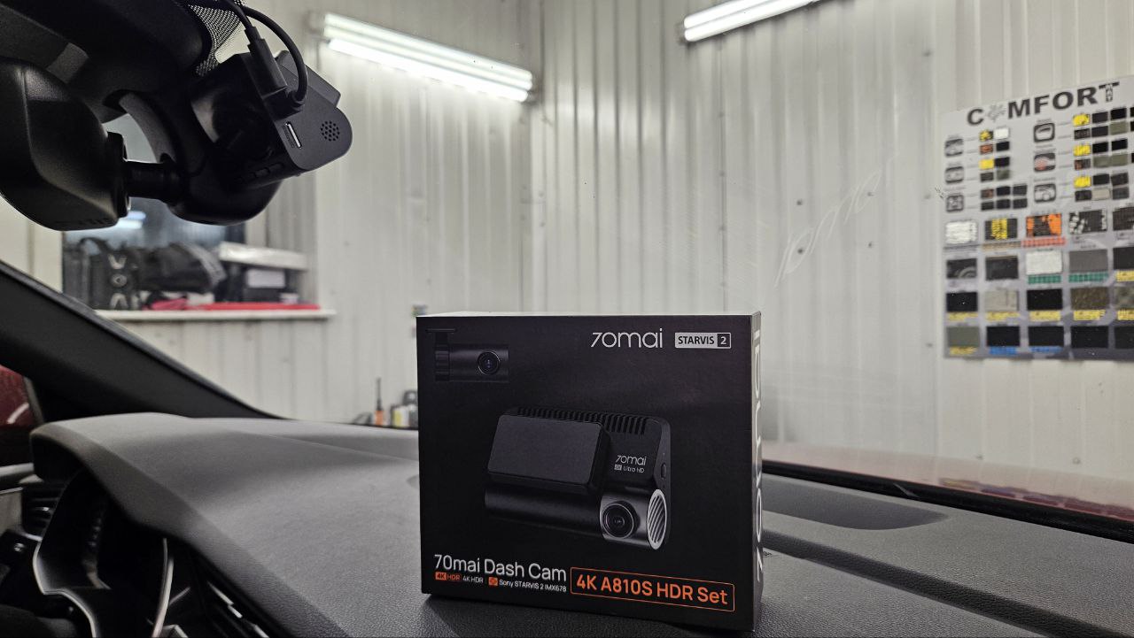 - Монтаж и интеграция двухканального видеорегистратора 70mai Dash Cam A810 4K UHD SET с камерами переднего (150°) и заднего (130°) вида. Устройство записывает видео в разрешении 4K, оснащено матрицей Sony STARVIS 2, GPS-модулем, функцией ADAS и поддерживает режим парковки при подключении через фирменный кабель 70mai UP03. Проводка проложена скрыто, настройка выполнена с активацией записи по событию и возможностью управления через мобильное приложение.