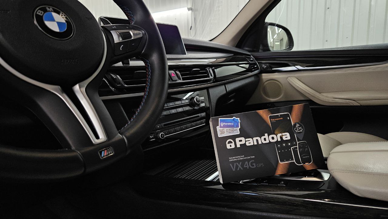 Также установлена охранно-телематическая система Pandora VX 4G GPS v3 с функцией автоматического запуска двигателя. Система интегрирована в штатные CAN-шины BMW, обеспечивает: