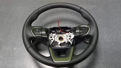 • Выполнен монтаж подогрева рулевого колеса с аккуратной интеграцией нагревательного элемента. Все работы проведены без нарушения оригинальной строчки и материалов обшивки — внешний вид руля полностью сохранён. Подогрев руля интегрирован в систему сигнализации, что позволяет управлять им дистанционно через мобильное приложение Pandora Online, одновременно с автозапуском или отдельно.