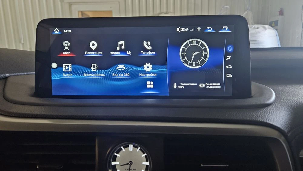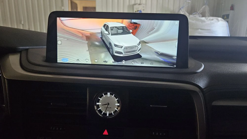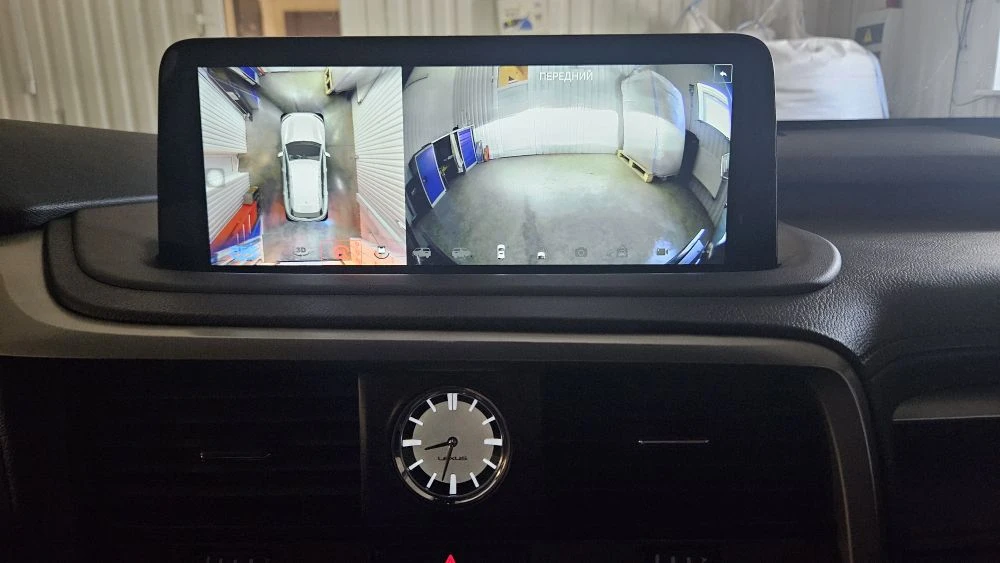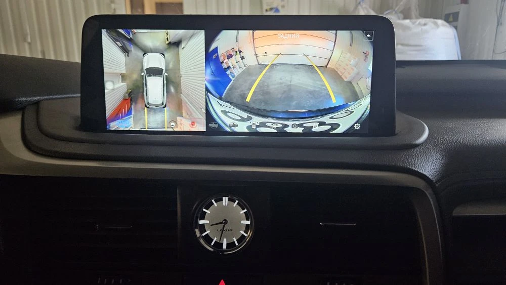 В рамках дооснащения автомобиля Lexus RX 2021 г были выполнены работы по полной модернизации мультимедийного комплекса. Заводской дисплей заменён на современную Android‑систему Radiola, а для максимального удобства маневрирования и парковки установлена система кругового обзора 360°.