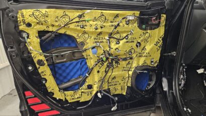 - Для улучшения акустики и общего уровня комфорта выполнена шумоизоляция дверей: применены материалы Comfort Mat Vespa и Soft Wave 15, что значительно снизило уровень внешнего шума и усилило глубину звучания музыки.